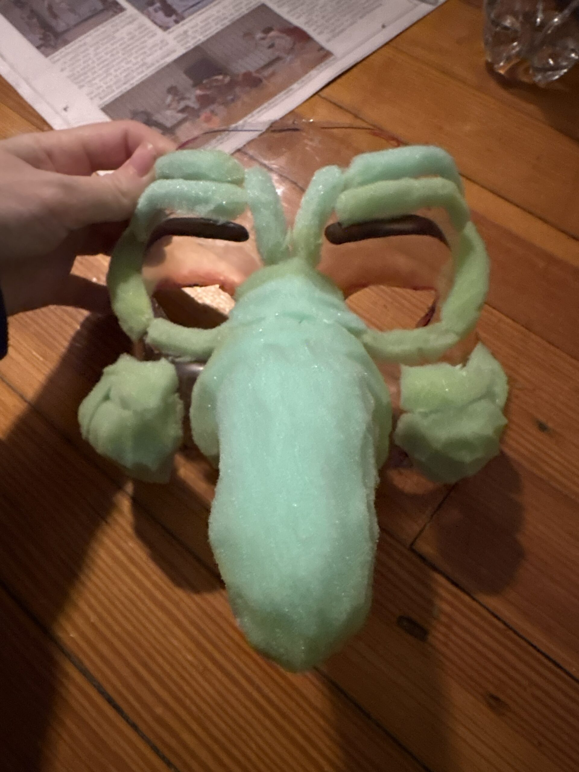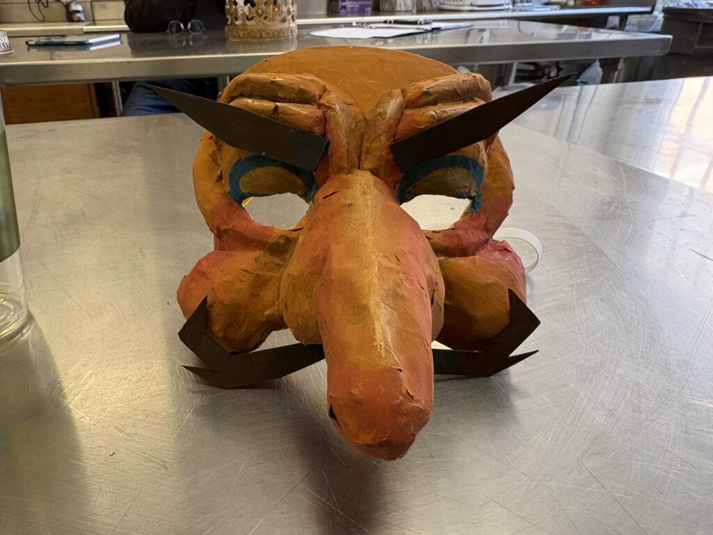 The “makeup” is more colorful with more rounded painted on shapes that are common in cirque masks. The base mask is exaggerated and wrinkled to look angry, similar to those in Commedia Dell’arte.
